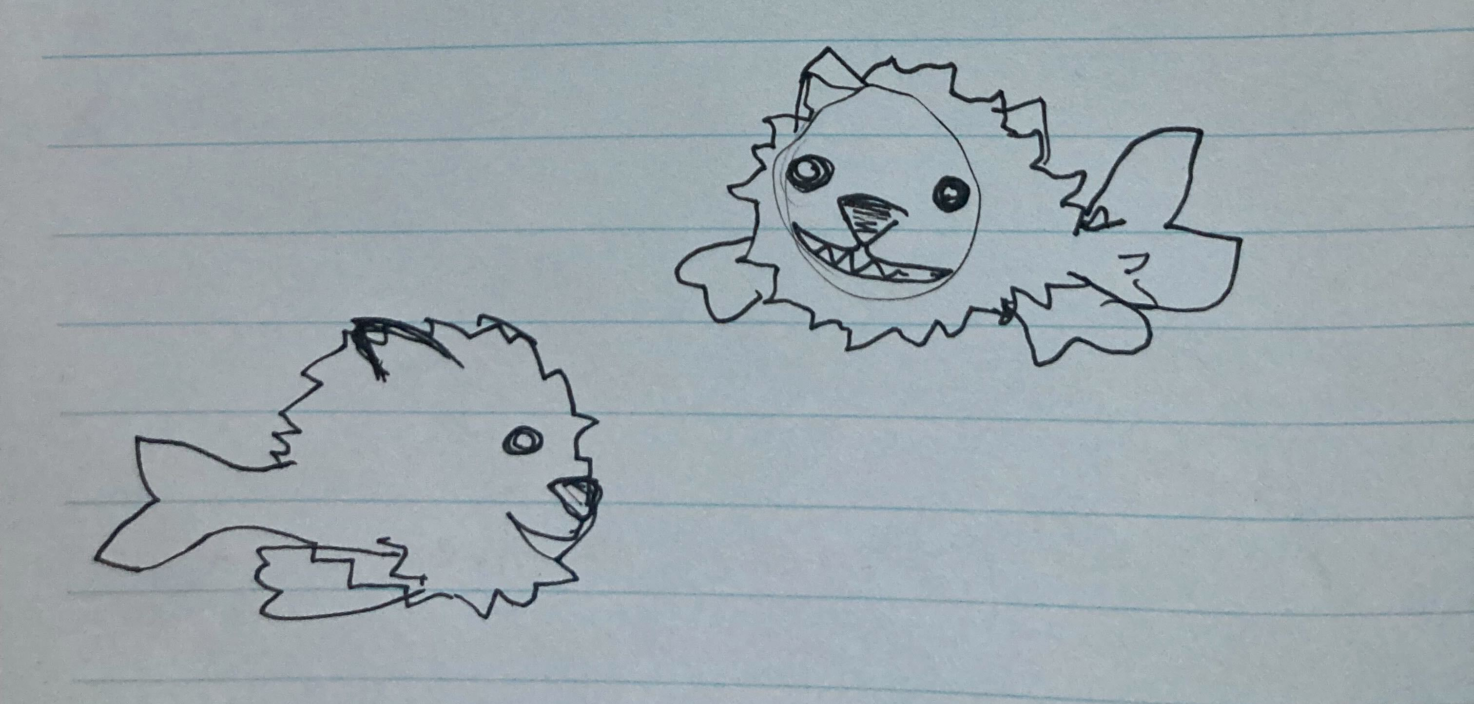 These drawings were all incredibly cute, although none quite felt hairy and untamed enough. They were effective fusions of the untamed idea with a general shape of a seal, but Alexis was itching to explore what it would be like to make a design whose entire shape was untamed.