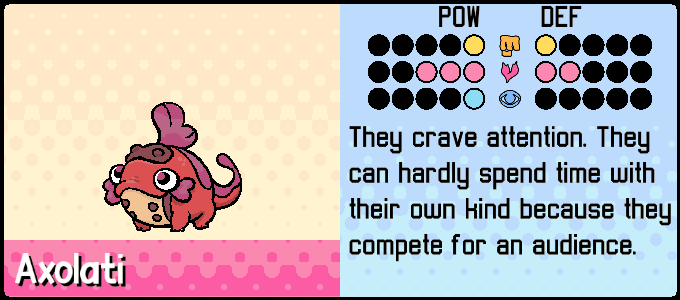 Thanks for joining us! This was a journey that we took over months… hopefully it gives you some idea of just how much thought and effort we put into each concept. Axolati was the first starter design we finished. Next week we’ll look at Kichik, the one we finished next!