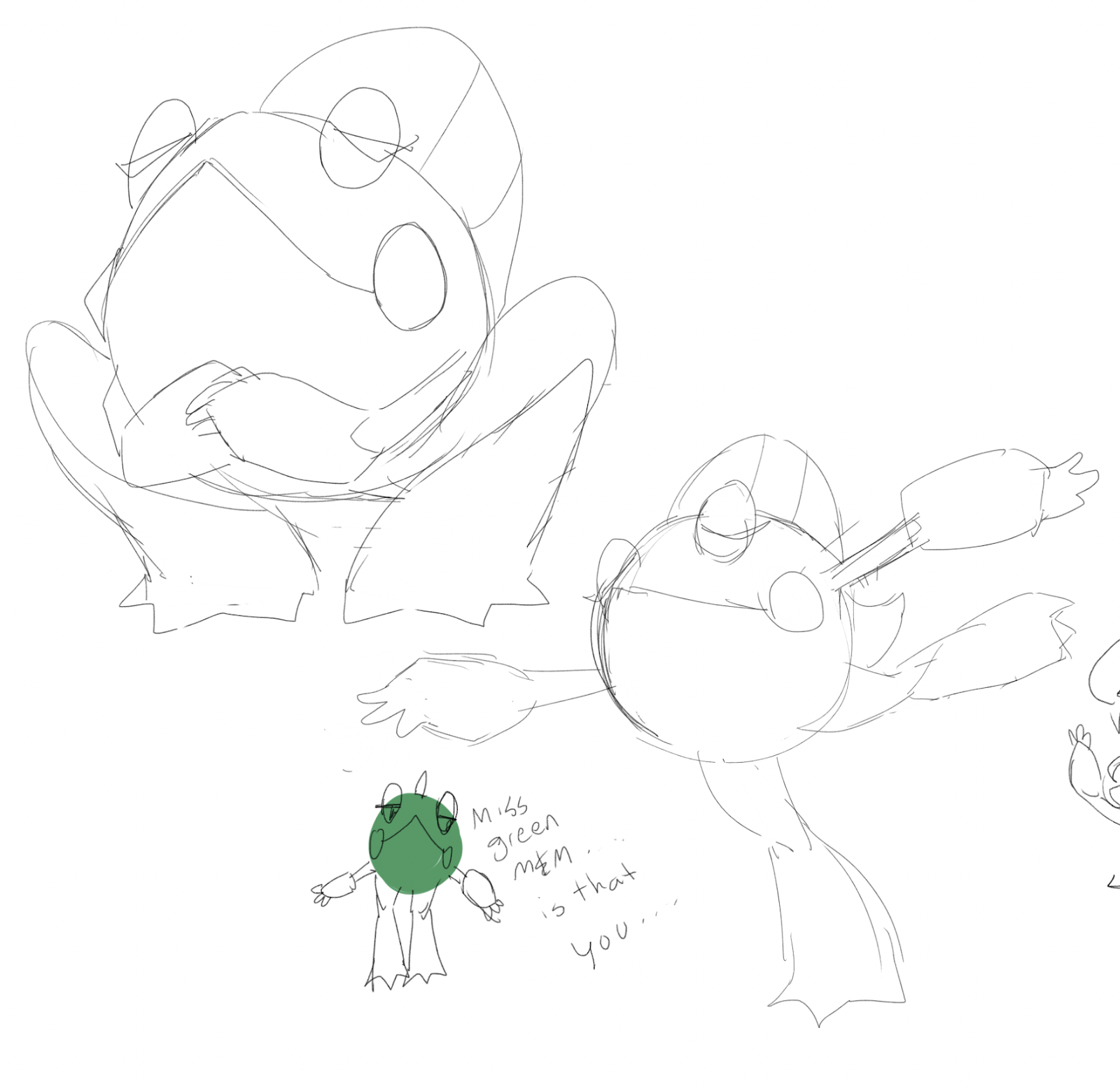 Tia: When in doubt, throw some shapes down to figure things out. This one scares me a bit… But at least it would’ve had a strong silhouette! I actually am afraid of frogs and toads, but looking up images of them was an okay thing for me to do. Trying to find weird ways to stylize a frog can be pretty hard when they’re already so simple!
