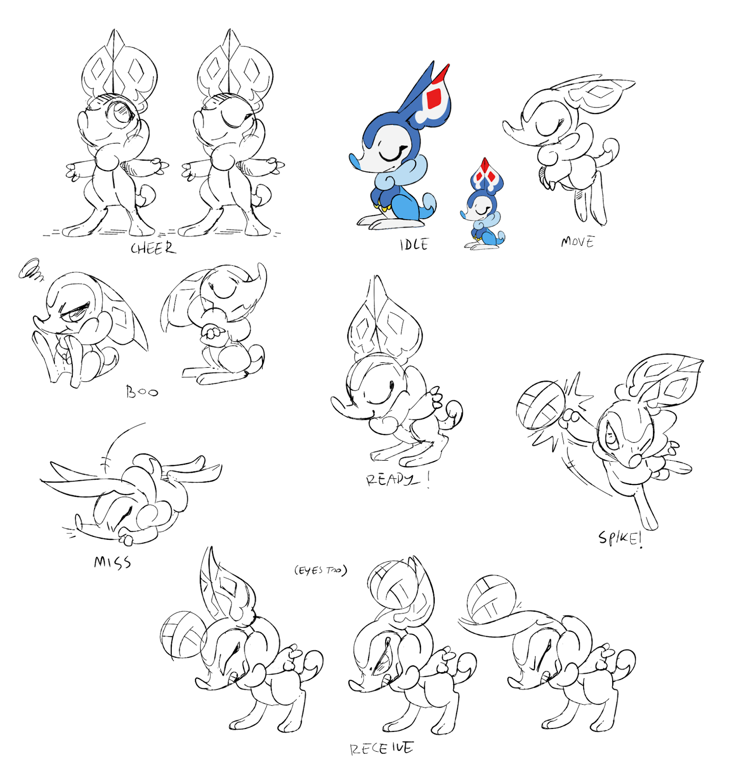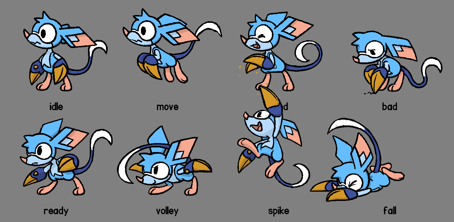Greg: This first drawing was done by Tia Rohrer in reaction to an early prompt for what eventually would become Servace - a “high energy net attacker”! It was Alexis’ idea to potentially use a Bilby for that prompt as an uncommon hopping/jumping animal that might leap and spike the ball.