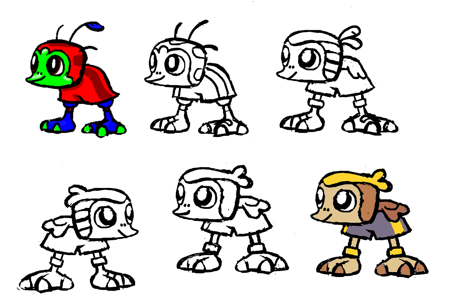 Alexis: Once we had Axolati finished and Bildit started, I had a good basis for comparison! …..aaaaand it was pretty clear right away that Kichik needed stronger shapes, simpler and more decisive details, and a clearer indication of their theming! And maybe a little more colour.