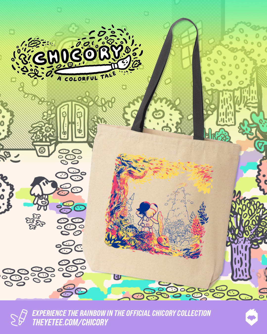 ANYWAYS, in celebration of our strange and beautiful little painting dog game turning 4, we’ve got a new tote bag to share with you!