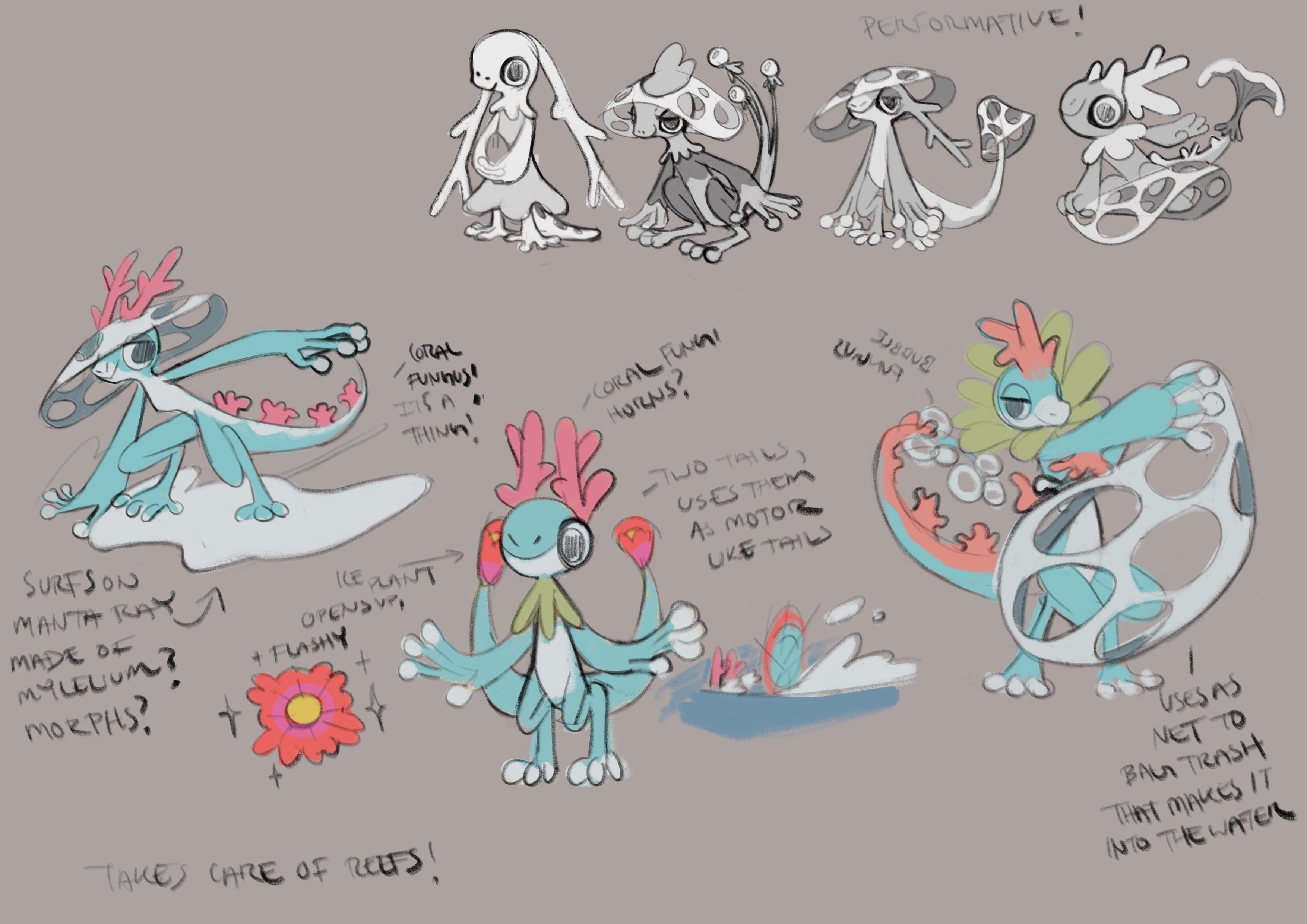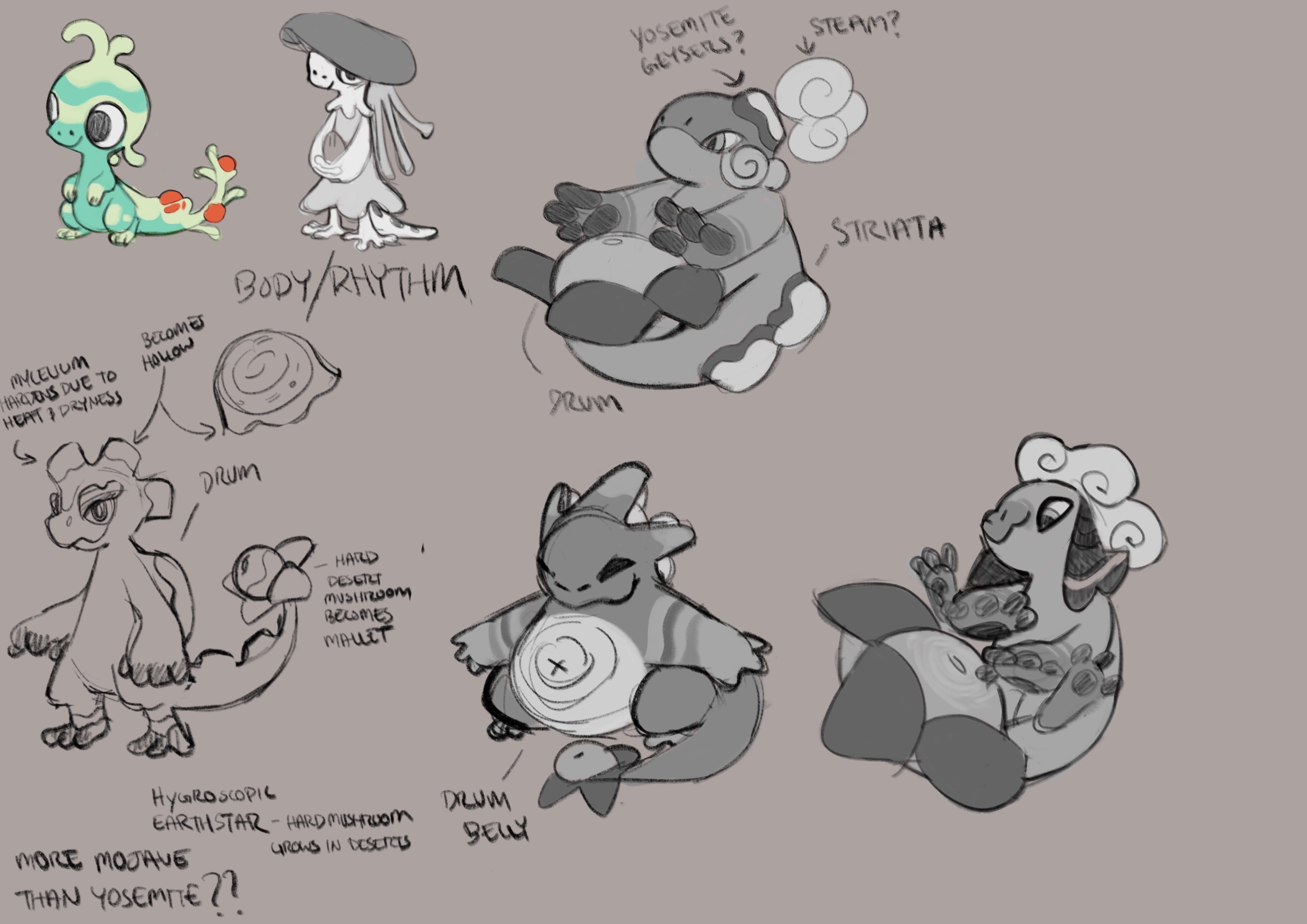 Discussing 3 Beastie designs at the same time was exhausting, but it did help us to clarify what made each of them distinct, and helped us to push each one in a unique direction. From early on I appreciate how willing Tori was to be playful with the silhouette and body shape, offering designs that were all over the place in personality. I think the seeds of each design were firmly planted from these first sketches, although they each still had a ways to go.