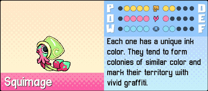 This multi-type offensive style is supported by their unique trait, Protean, which changes any POW boost so that it boosts all 3. For example, if a teammate were to boost their Body POW, their Mind and Spirit POW will go up as well. This makes Squimage very effective at providing additional coverage to a team that mostly focuses on only one type of attack and boost.