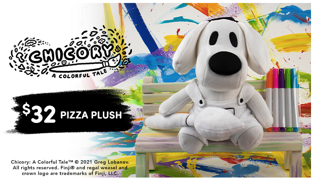 This has been a long time coming!!! Getting Pizza’s weird, beany head and body shape just right took some real time and effort. Fangamer also went above and beyond with cool features, like magnets in the hand + brush to make them all stick to each other, and, yes… the entire plush is made of washable, markerable material so you can go nuts and draw all over them. It’s kind of cute, and kind of deranged, and we love it.